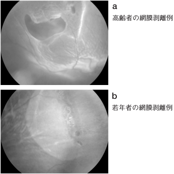 破れたりしわになったフィルムではまともな写真が撮れないように、網膜剥離が生じると視野や視力が障害されます。大半の網膜剥離は神経網膜に孔(裂孔)ができて起こるので、裂孔原性網膜剥離(図4-a.b)と呼ばれます。それに対して孔を伴わない網膜剥離もあり、非裂孔原性網膜剥離といいます。