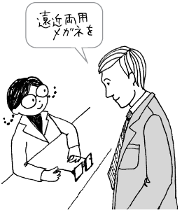 遠方と近方が見えるスタンダード型(遠近型)、遠方と中間距離の見えるゴルフ用(遠中型)、中間距離と近方が見える室内用(中近型)、近くのものが見やすいコンピュータ用(近近型)などがあります。