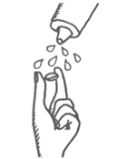 手のひらにレンズをのせ、洗浄液をかけて、レンズの両面を指の先で、ゆっくりとこすり洗いする |