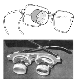 図1 :眼鏡式拡大鏡(弱視眼鏡)─ 単眼鏡、複眼鏡 |