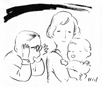 | 医師 | 三歳までなら遮閉法だけで、多くのお子さんの視力が回復します。しかし、小学校に入学してからでは、どんな方法でもあまり期待はもてません。こうした治療は六歳までに行われないとほとんど効果はありませんから、お子さんに斜視があればなるべく早く検査を受け、治療しなければなりません。 |