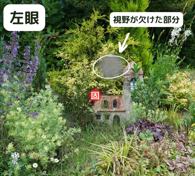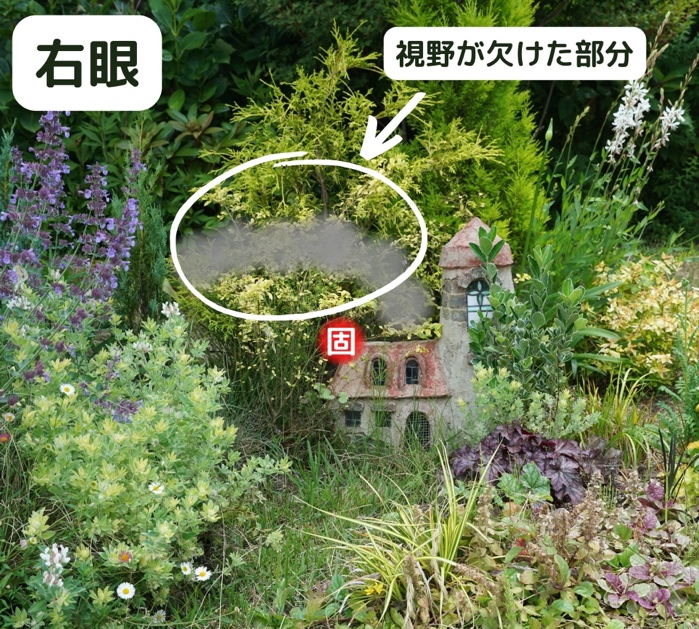 左右の写真を見て、それぞれどのあたりが見えていないのか、おわかりになりますでしょうか。それでは下の写真をご覧ください。