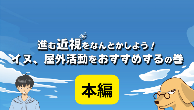 【近視予防の啓発動画「進む近視をなんとかしよう! イヌ、屋外活動をおすすめするの巻」】