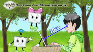 “Keep your eyes at least 30 cm away from the screen.” — Short Video ① (Japan Ophthalmologists Association) |